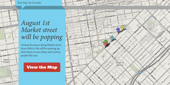 On Wednesday, August 1st, SQFT is demonstrating the power of the pop-up in Mid-Market, San Francisco. Various locations along Market Street from 5th to 7th Street will be opening up their doors to new ideas and curious people like the readers of The Fetch.